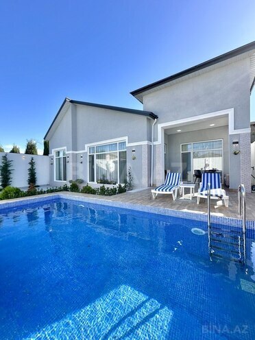 Şağan gəsəbəsi məktəbin yaxınlığında tam əşyalı 3 sotda yeni inşa edilmiş bag evi satılır, 140 kv.m, 1 zal, 3 yataq, 2 s/q, əla təmirlidir, isti döşəmə, kombi istilik sistemi, teras, filterli hovuz, qaz, su və işıq daimidir. Çıxarışı var. Bag yaşayış massivində yerləşir və il boyunca yaşamaq üçün yararlıdır. Yolu asvalt örtüklüdür.