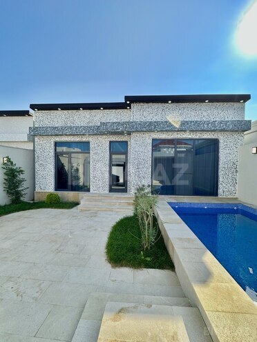 Şağan gəsəbəsi, Müharibə əlillərinin pansionatının yanı 3 sotda yeni inşa edilmiş bag evi satılır, 120 kv.m, 1 zal, mətbəx, 3 yataq, 2 s/q, əla təmirlidir, isti döşəmə, kombi istilik sistemi, filterli hovuz, söhbətqah, san/q, manqal, qaz, su və işıq daimidir. Çıxarışı var. Bag yaşayış massivində yerləşir və il boyunca yaşamaq üçün yararlıdır. Yolu asvalt örtüklüdür.