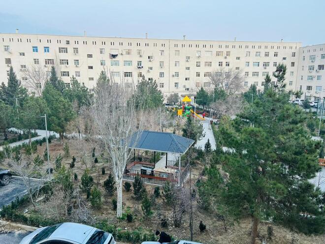 • Binanın həyətində istirahət zonası, uşaq parkı və futbol meydançası var