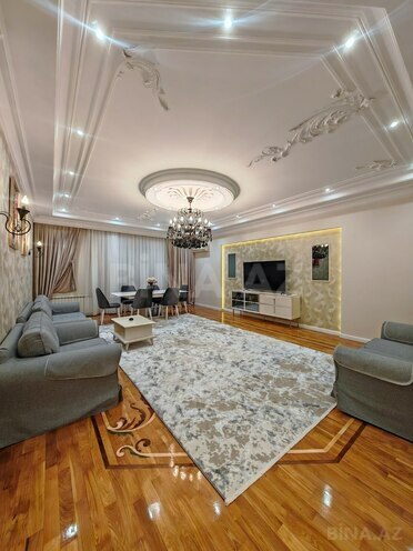 Located on Rashid Behbudov street next to the Central Bank, this 215 m² fully renovated 4-room apartment is for sale in a premium building.